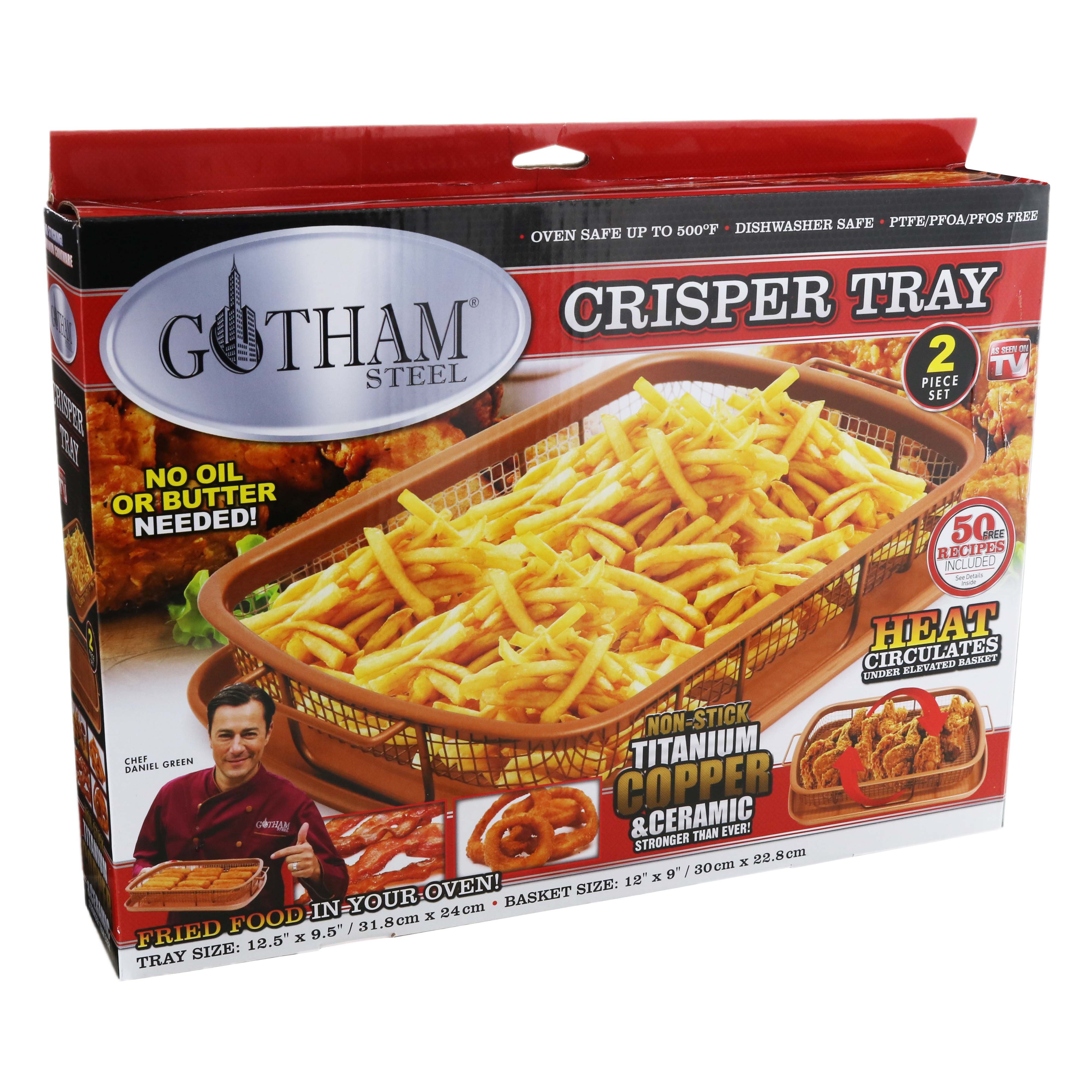 Gotham steel crisper tray with nonstick copper surface. Designed to create crispy dishes without excess oil or butter. Works to cook food evenly on all sides. Easy grip handles. Ceramiccoated basket helps air to circulate around food..Now you can easily crisp anything from veggies to French fries with the Gotham Steel TiCerama Nonstick Copper Crisper Tray. Perfect for all of your crisping .Gotham Steel Nonstick Copper Crisper Tray, 12.5" x 9", As Seen on TV. Average Rating: (4.3) .COVID19 guidelines may delay shipping. Thank you for your patience. Gotham Steel Crisper Tray with Nonstick Copper Surface As Seen On Tv. Gotham Steel .The Copper Gotham™ Steel Crisper Tray is the amazing nonstick baking rack that fries food in the oven for a delicious crisp every time..Buy Gotham Steel Unique Elevated Nonstick Crisper Tray, XL, Brown: Hose Reels Amazon.com ✓ FREE DELIVERY possible on eligible purchases..Buy Gotham Steel Nonstick Copper Crisper Tray AIR FRY IN YOUR OVEN As Seen on TV by Daniel Green: Hose Reels Amazon.com ✓ FREE DELIVERY